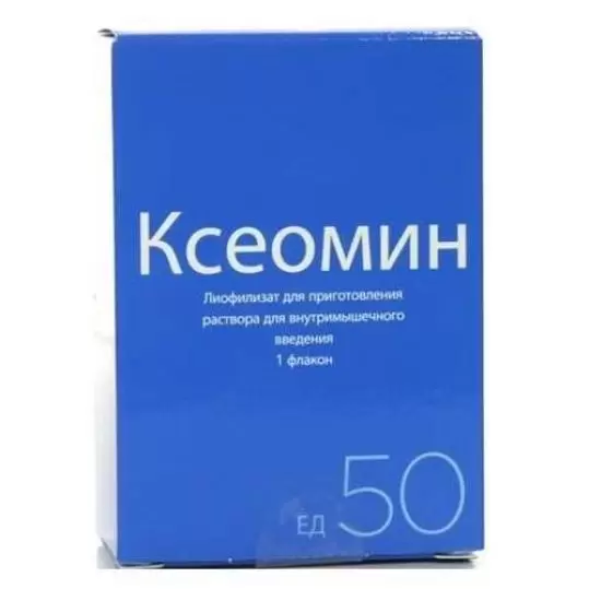 Ксеомин, 50 и 100 единиц. Лиофилизат для приготовления раствора для внутримышечного введения. Ксеомин представляет собой ботулинический токсин, продуцируемый штаммом бактерии Clostridium botulinum типа А, освобожденный от комплексообразующих белков.