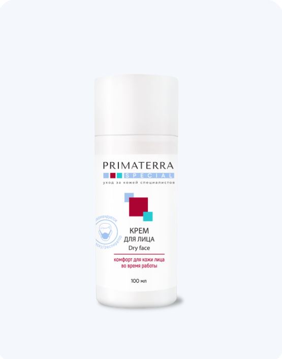 Защитный Крем Dry face создан на основе прямой эмульсии и предназначен для защиты кожи лица от чрезмерного потоотделения, а также для защиты от бактериальных и грибковых инфекций кожи при длительном ношении маски или респиратора.