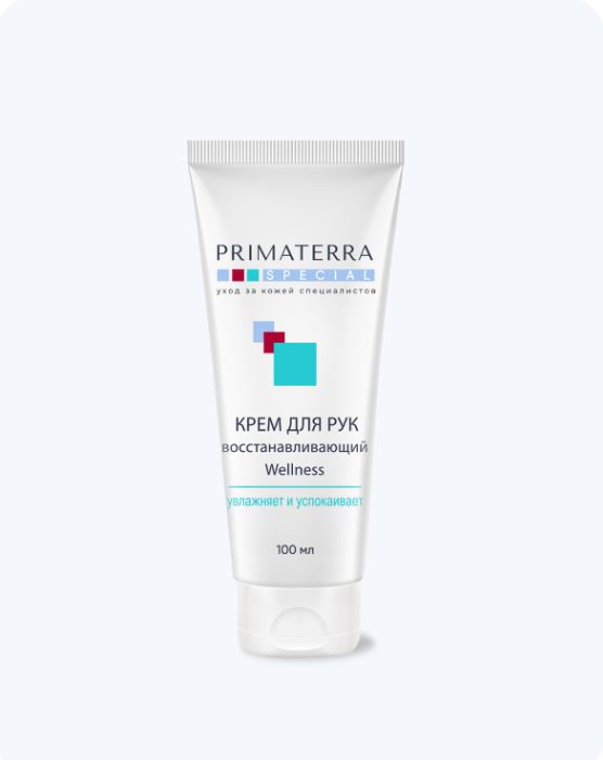 После работы с загрязнениями, негативного воздействия на кожу рук или лица, при повышенном потоотделении, частом использовании очищающих средств мы советуем специалистам использовать регенерирующий крем Wellness от Primaterra cosmetics.